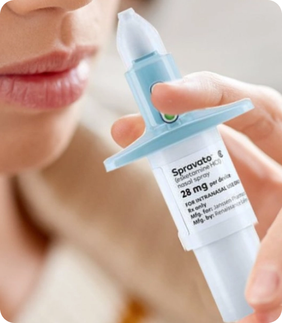 SPRAVATO® (esketamine) is a fast-acting, FDA-approved nasal spray for adults with treatment-resistant depression or suicidal thoughts. Administered under medical supervision in our Oregon and Washington clinics, SPRAVATO® offers relief when other treatments have failed. It works differently from traditional antidepressants—often bringing results within hours or days instead of weeks.